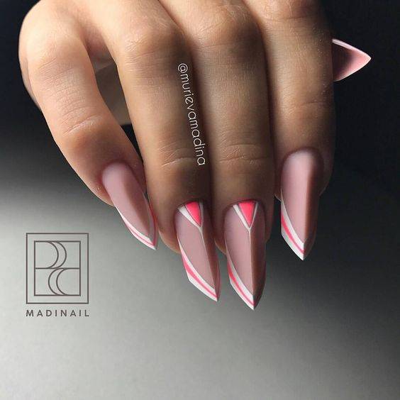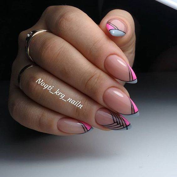 Ещё несколько замечательных идей розового маникюра с геометрией: