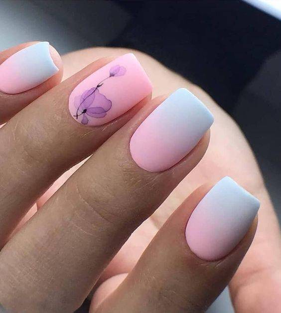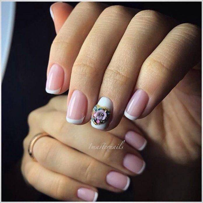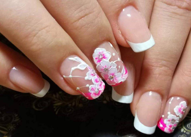Очень красиво выглядит цветочный принт в сочетании с классическим френчем, матовым покрытием, объёмной росписью.