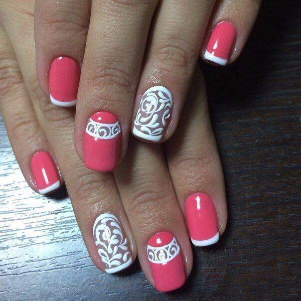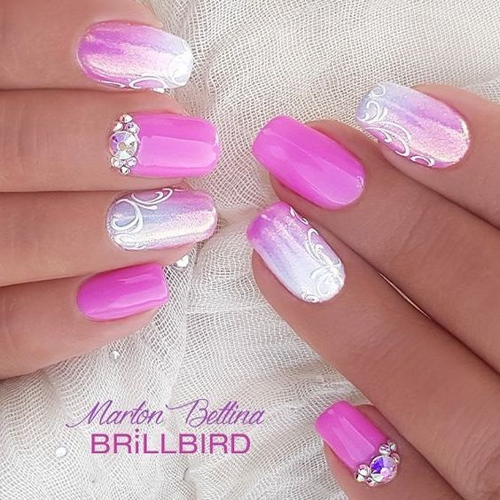 Сложно найти оттенок, который не украсил бы белый. Цвет чистоты, элегантности, женственности лучше всего балансируется нежным розовым лаком. Ярко-розовый маникюр с белым напоминает клубнику в шоколаде и подойдет для жарких летних дней. Вместе эти цвета создают гармоничную пару, которая вызывает ощущение спокойствия и гармонии, а обладательницу маникюра делает еще привлекательнее.