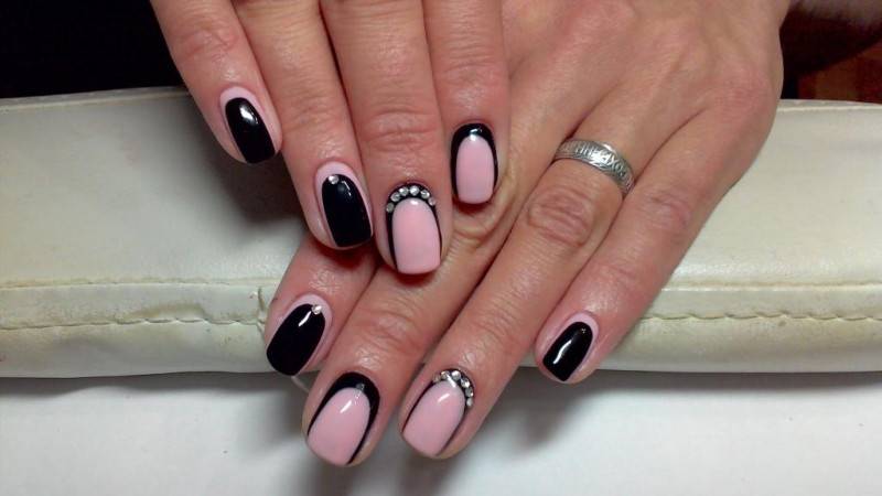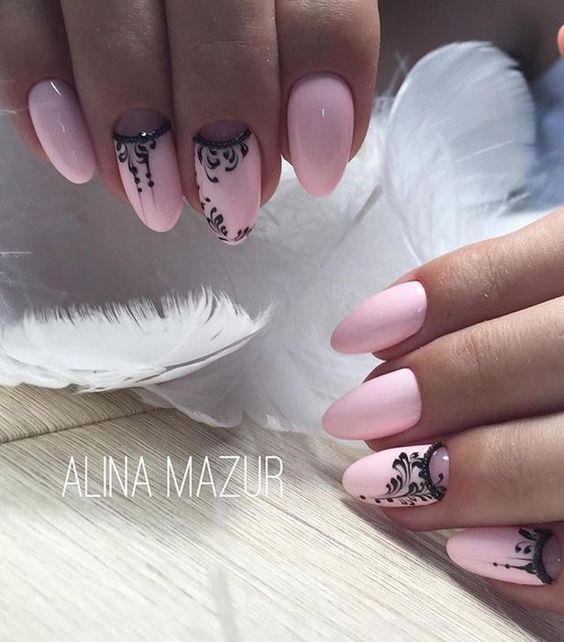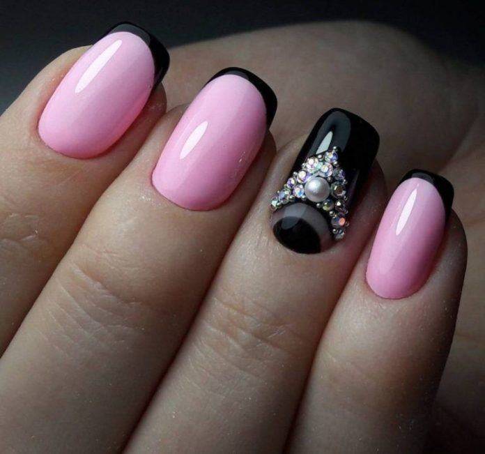 Ниже мы подобрали несколько идей маникюра в розовых тонах с вкраплением черного. Посмотри, насколько эффектно смотрится френч — мы бы не догадались так интересно скомбинировать эти два цвета. Чтобы усилить глубину черного, в некоторых дизайнах можно использовать черный песок или добавить немного серебряного глиттера.
