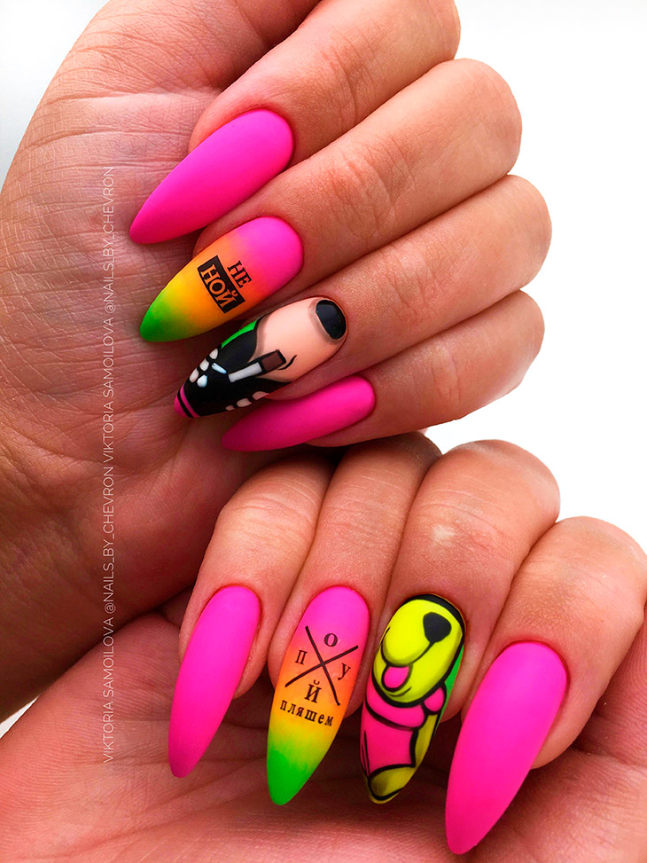 Розовый может «похвастаться» огромной палитрой ярких неоновых цветов, которые будут привлекать внимание к ногтям: