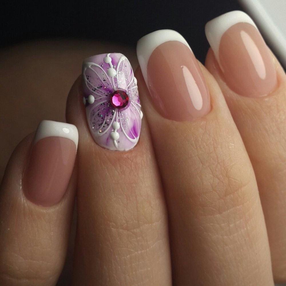 - во френче (мелкими стразами можно оформить улыбку, выложить узор, надпись или фигуру);
