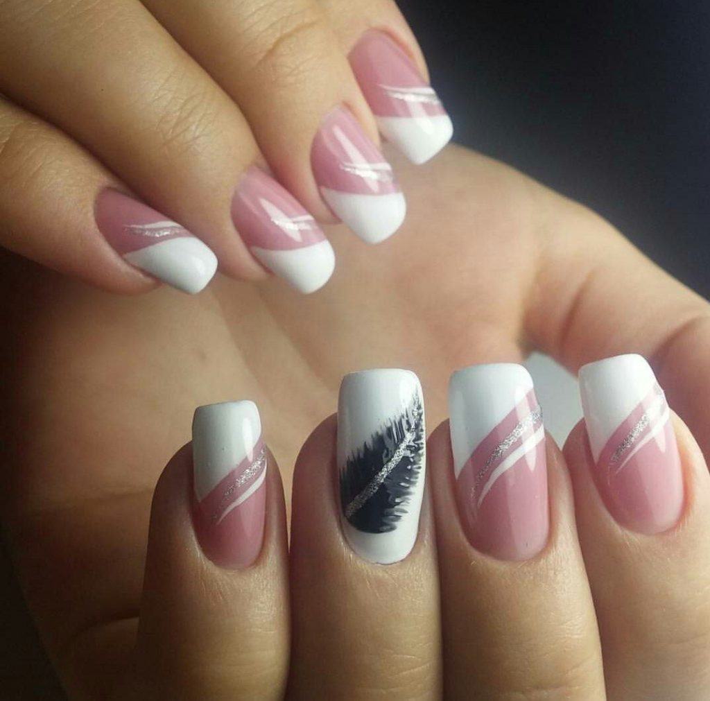 Ниже мы подобрали несколько идей маникюра в розовых тонах с вкраплением черного. Посмотри, насколько эффектно смотрится френч — мы бы не догадались так интересно скомбинировать эти два цвета. Чтобы усилить глубину черного, в некоторых дизайнах можно использовать черный песок или добавить немного серебряного глиттера.