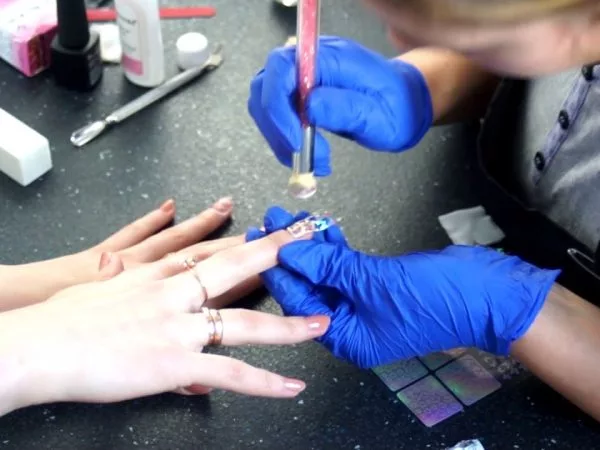 Во втором пудру перемешивают с бесцветным раствором, которым необходимо орудовать быстро, так как он оперативно застывает от контакта с воздухом. Поэтому чаще всего такое решение используется, когда необходимо удлинить ноготь.