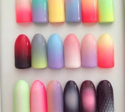 Чтобы сделать градиент в технике аэропуффинга, необходимо подготовить ногти. Вначале снимают старое покрытие, делают непосредственно маникюр, только потом на ногти наносится база.