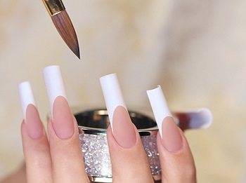 - Акрил допускает использование как на наращенных ногтях, так и на натуральных.