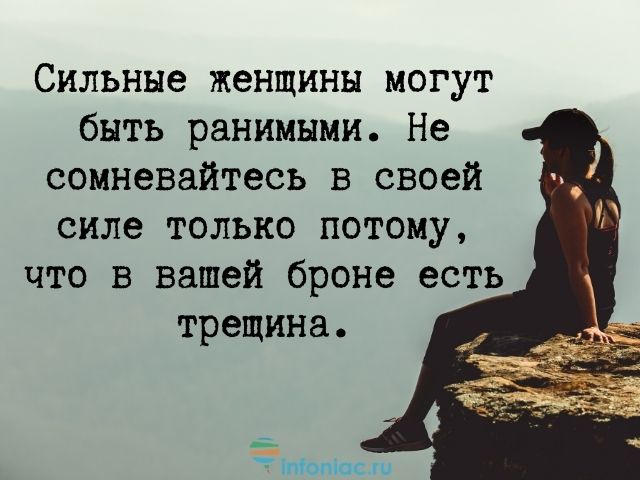 32. Сильные женщины могут быть ранимыми. Не сомневайтесь в своей силе только потому, что в вашей броне есть трещина. | Неизвестный автор