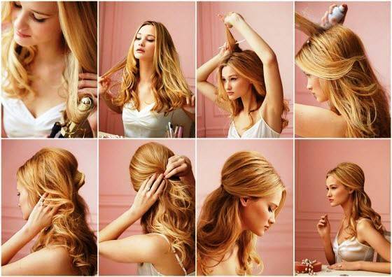 Для повседневного образа не обязательно уделять пристальное внимание каждой пряди или делать начес. Чтобы сэкономить время, следует горизонтально разделить волосы на 2 части, затем подкрутить крупные пряди, начиная с середины длины. Нет смысла накручивать пряди от корня, так как они все равно будут собраны