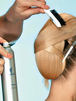Закрепляем полученную форму прически шпильками и сбрызгиваем лаком сильной фиксации.