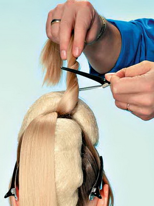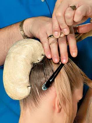 - Туго скрутить их в области затылка, создавая из них вид ракушки.
