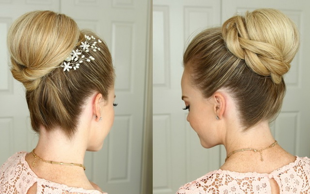 Высокие укладки с косами — неплохой вариант на каждый день и для особых случаев (их делают даже невесты). Такие прически часто украшают цветами — живыми или искусственными.
