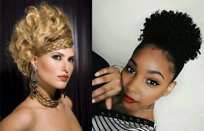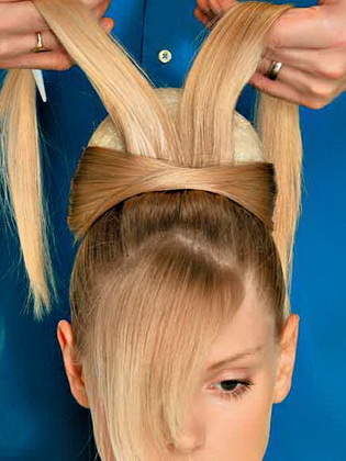 Подобные укладки созданы для обладательниц длинных и средних волос. С помощью специальных девайсов — накладных хвостов, кос — создаются и на коротких локонах, искусно зафиксировав пряди.