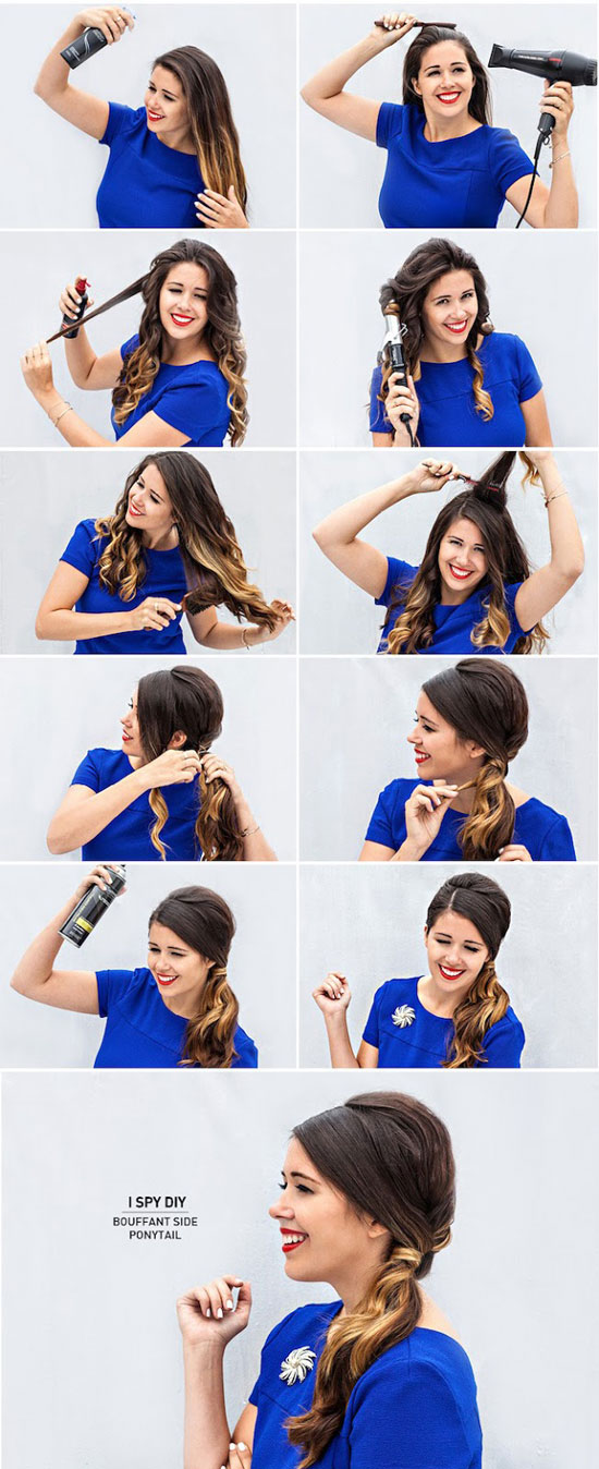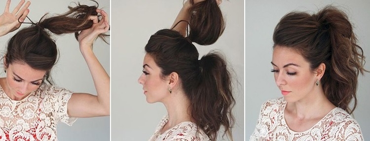 Обыкновенный хвост тоже можно сделать, пользуясь техникой начесывания. Принцип проведения аналогичный и традиционной техники создания хвоста, только перед его оформлением на макушке волосы начесывают. Подобную прическу можно без проблем укладывать ежедневно и всякий раз выглядеть отлично. Начес делают на макушке, после этого волосы зачесывают на одну сторону и закрепляют шпильками. К тому же пряди можно заплести в свободную косу или оставить с распущенными кудрями.
