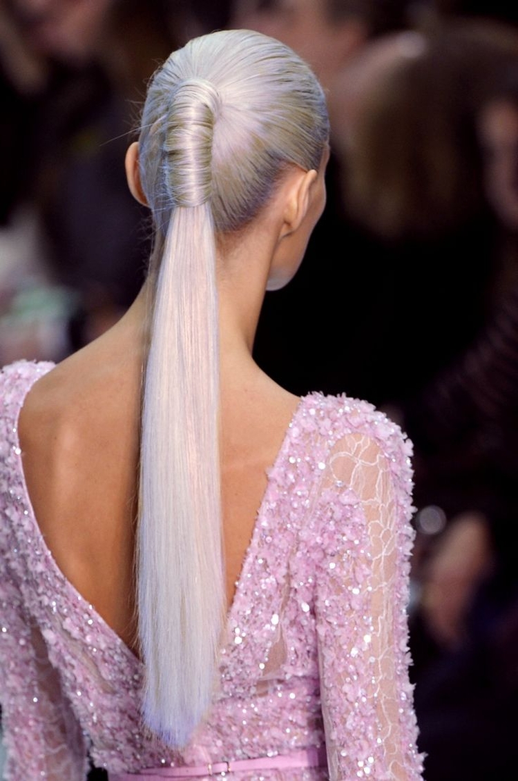 Особо эффектно выглядят всевозможные вариации хвостика на большой длине. Можно остановиться на простом хвосте на самой макушке или поэкспериментировать со сложными плетениями.