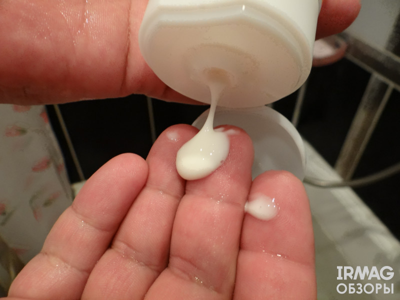 По консистенции это белый не самый густой гель, который прекрасно пенится, и легко справляется с детскими волосиками.