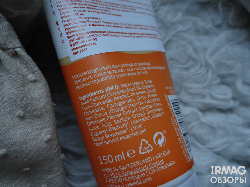 Weleda славится своей натуральностью- тем и привлекла меня в выборе детских средств. А еще, я очень люблю веледовские ароматы, они яркие, сочные и вкусные. Вот и тут. Апельсин, так апельсин!! Я же говорю, хочется самой намылиться!