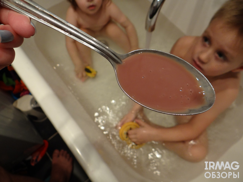 - Играя в ванной детки иногда случайно глотают водичку, а тут ничего вредного и опасного. Полностью натуральный состав, травки и экстракты, можно быть спокойной.