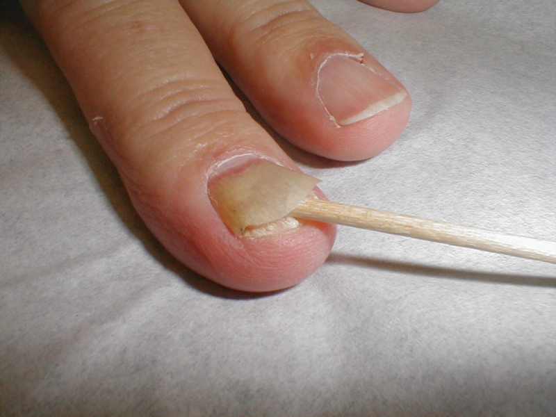 - происходит отслаивание ногтевой пластины от ногтевого ложа;