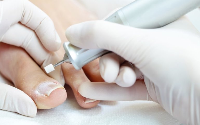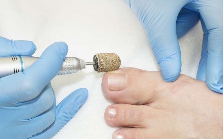 - Аппаратный. Метод предполагает дезинфекцию специальной жидкостью и воздействие на ороговевшие клетки с помощью фрез.