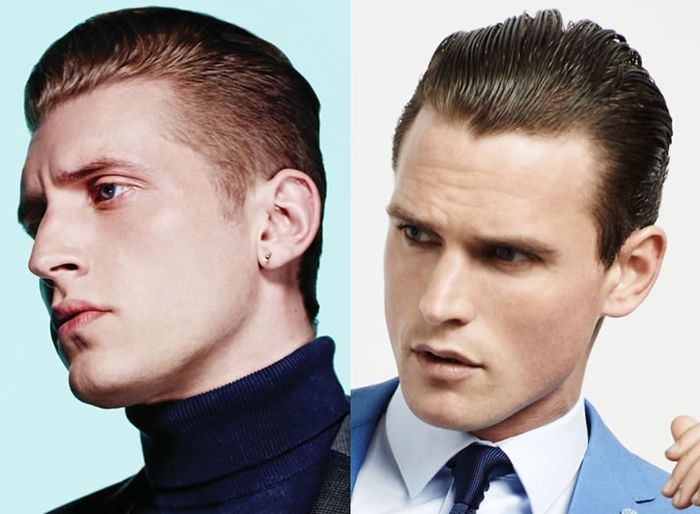 Ретро и классика Предпочтение им отдают мужчины, носящие классический стиль одежды, имеющие консервативные взгляды. Сделать ее очень просто: на пряди наносится средство для укладки волос типа мусса или пенки. Потом при помощи расчески всю шевелюру с лобной части зачесывают к затылочной. РокабиллиПрическа характеризуется как непосредственная и строптивая. Чтобы ее сделать нужно вначале собрать всю шевелюру волос с верхней части головы в лобной зоне. Нанести на них небольшое количество стайлингового средства. Потом сформировав хохолок, разместить его от затылка ко лбу.