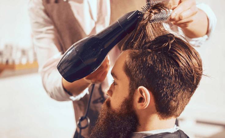 - Направляется струя воздуха от фена со стороны лба в направлении макушки. Затем высушив их до конца наноситься воск, благодаря которому придается небрежный вид, и они так не станут мешать.