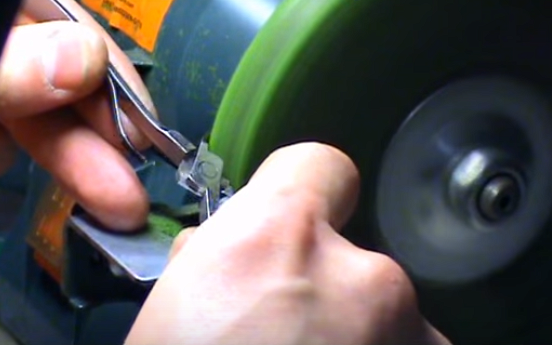 Работа со станком должна происходит на минимальной скорости. Область затачивания не должна превышать 0,3 мм, и обязательно только в одну сторону;