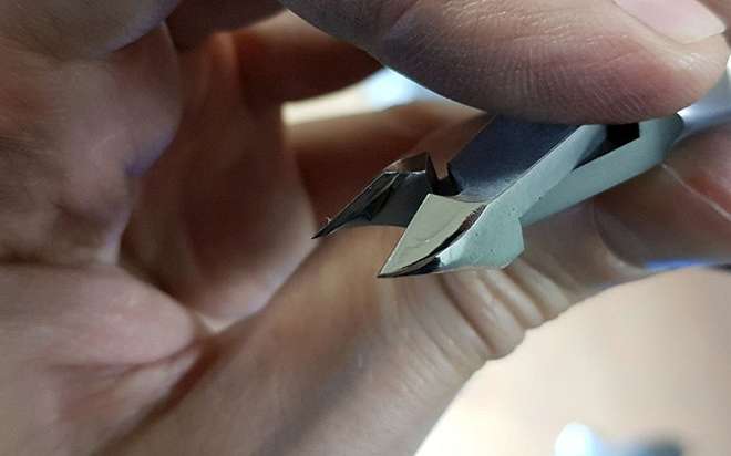Если клещи для кутикулы были заточены правильно, вы получите срез с гладкими и четкими краями. Если инструмент «грызет» полиэтиленовый пакет, значит, процесс заточки проводился с нарушением технологии, и мастеру необходимо исправить недостатки.
