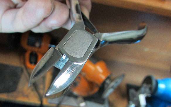 В том случае, если винтик уже затянут, а лезвия по-прежнему болтаются, ни в коем случае не подгибайте лезвия. Исправить это можно, подточив ограничитель, это позволит приблизить лезвия друг к другу. Даже у новых кусачек иногда изначально бывает люфт. Если его не убрать, то не будет правильного прижима режущих кромок, вследствие чего кусачки будут оставлять заусенцы и плохо срезать.