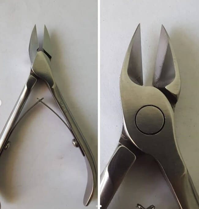 - Если необходимо проверить щипчики для обрезания кутикулы или кусачки, следует внимательно осмотреть аксессуар и выяснить, есть ли на нем зазубрины. Кроме того, необходимо убедиться в отсутствии зазора между лезвиями: края должны быть идеально ровными, а поверхность – гладкой.