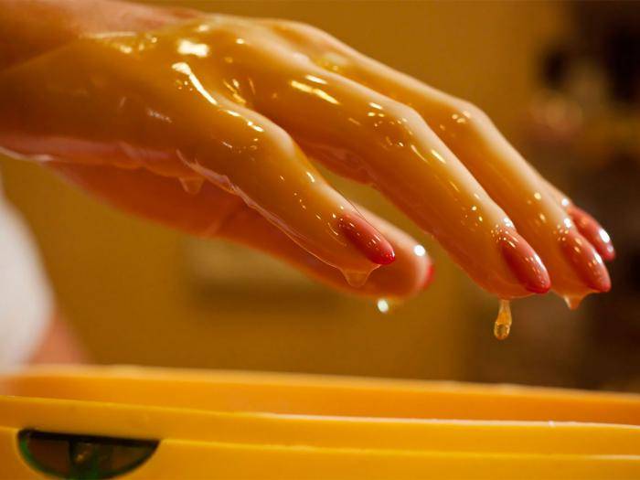 В подогретое масло добавить остальные ингредиенты, перемешать. Принимать ванночку 15 – 20 минут, после чего обернуть пальцы пищевой плёнкой и в течение 2 часов не мыть руки. Лучше всего делать процедуру на ночь.