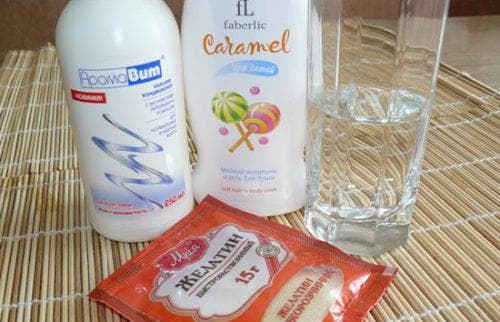 Вода и желатин берут в пропорции 3:1. После того, как основной компонент разбухнет, его нужно будет тщательно перемешать с бальзамом.