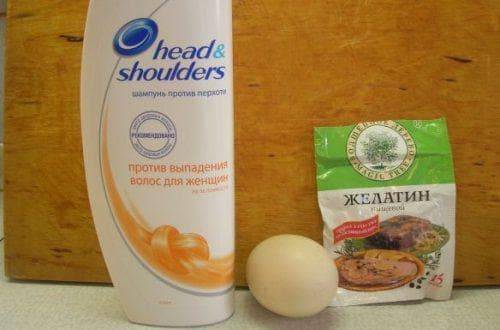 Маска с шампунем. Данную маску готовят из трех ингредиентов. Нужно смешать желатин с водой, дать настояться. Обязательно его нужно подогреть, чтобы разбить комки. Потом добавляют шампунь. Если вы брали 1 столовую ложку желатина, то шампуня достаточно взять одну чайную ложку.