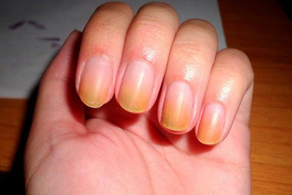 После лака на ногтях желтые пятна: отчего и почему желтеют ногти на руках после лака