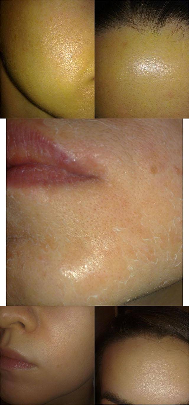 - Кожа будет сильно облазить, могут образовываться корочки, лицо может болеть и чесаться.