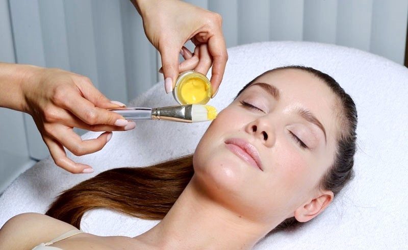 Следующий этап – нанесение пилинга. Его могут распределять как по всей поверхности лица, так и на отдельные участки.