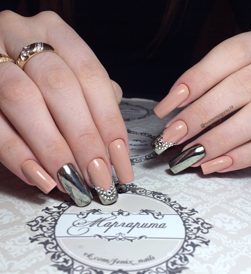 Фото тренда 2017 года — затирка маникюра зеркальным песком: