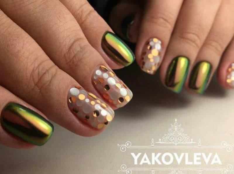 На основе специальных лаков и дисперсионных порошков вы создадите на ноготках яркие отливы, которые гарантированно обратят на себя внимание всех окружающих. Продумайте собственный нейл-арт до мелочей и отправляйтесь в ближайший магазин косметики за качественными расходными материалами. Создавайте на ноготках неповторимые образы, не выходя из собственного дома