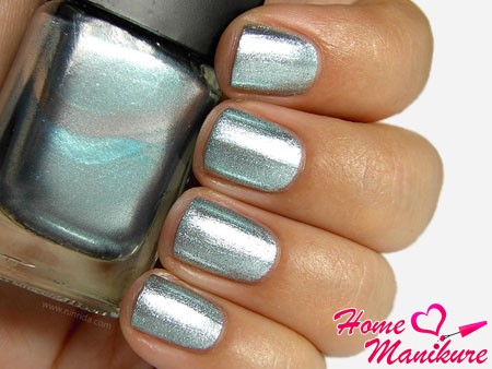 С помощью этой втирки можно создать повседневный маникюр с легким мерцанием либо же добиться явного металлического эффекта. В зависимости от цвета лака-подложки ногти также могут выглядеть по-разному.