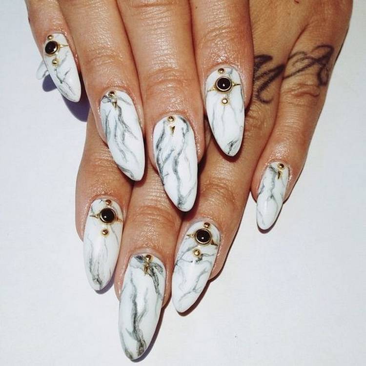 Эти в виде камней, действительно напоминают настоящий мрамор, оникс, опал и другие известные драгоценности. Вы можете в домашних условиях, если будете использовать декоративные блестящие камни на ногтях. Оценивайте и вдохновляйтесь!