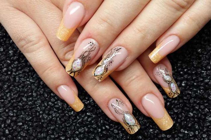 Если вы делаете наращивание в салонах, то легко можете попробовать сделать красивый маникюр с индивидуальным дизайном по методике Екатерины. Суть состоит в том, что позволить делать себе такое может только тот, кто делает наращивание гелем, потому что литье с жидкими камнями — это нанесение рисунка тиснением специальной фольги на гель. Иногда эту технологию применяют и на гель-лак, но очень редко.