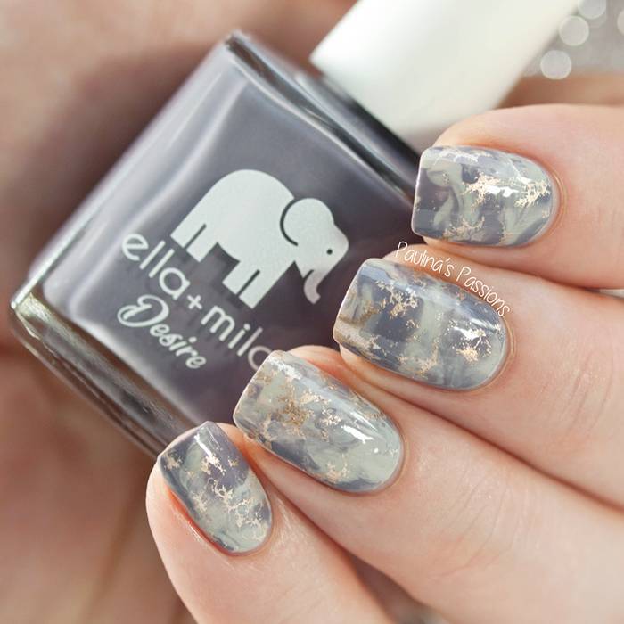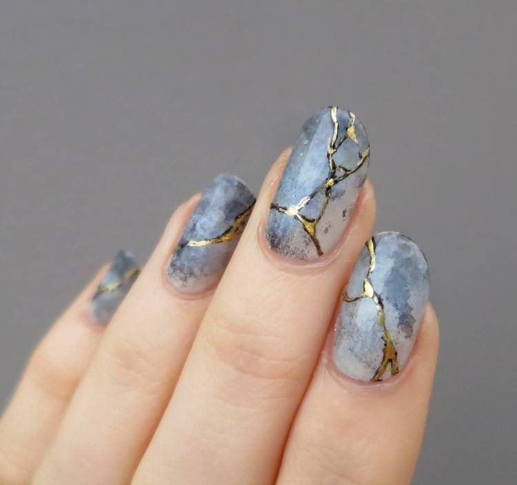 Мраморный маникюр с золотым и блестящим гель-лаком