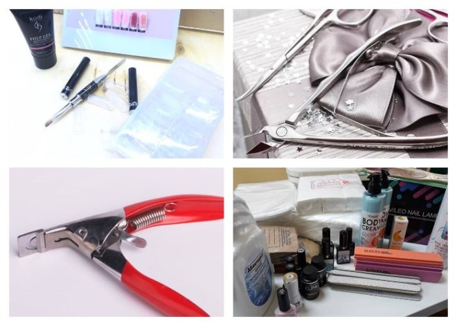 Все, что нужно для наращивания ногтей на типсы, – собственно накладки, гель (или другой материал), клей, гель-лак (или обычный лак) и инструменты.