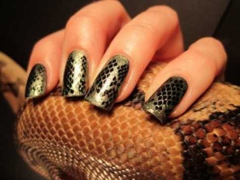 Но что делать, если спустя некоторое время змея забыла о том, что Вы её приветливо встретили на Новый год? Как снова задобрить змею, чтобы удача не отворачивалась от Вас? Попробуйте внести в свой имидж что-нибудь змеиное! Очень удачной находкой будет змеиный дизайн ногтей. Тем более что этим Вы сможете не только задобрить хозяйку года, но и зарекомендуете себя как модную девушку. В настоящее время змеиный дизайн ногтей чрезвычайно актуален.