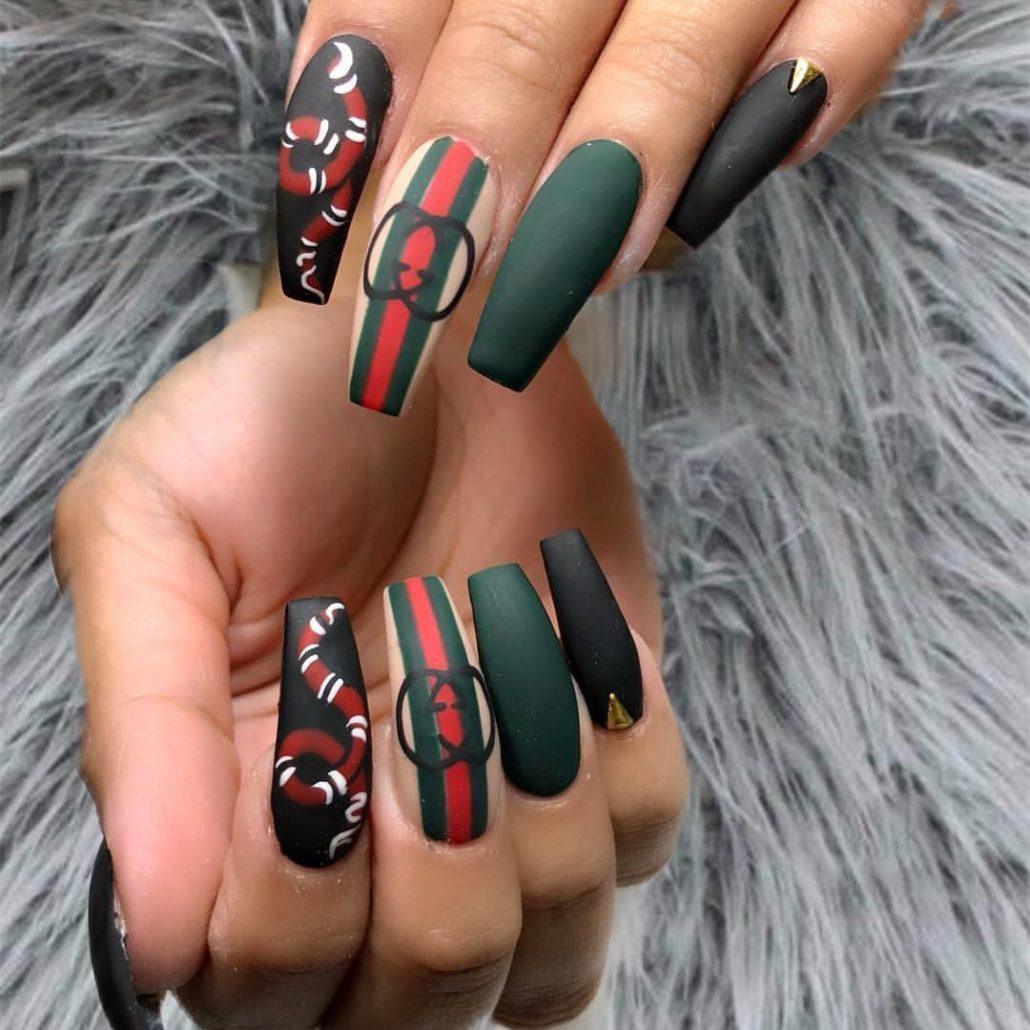 Также на длинных ногтях очень важно выполнить модный и стильный дизайн в стиле Gucci