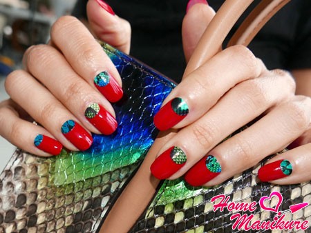 Элементами дизайна «рептилия» можно дополнять классический вариант маникюра