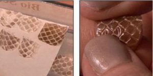 Благодаря современным материалам мастера маникюра имеют возможность создавать на ногтях просто настоящие произведения искусства, и без особого труда выполнять дизайн, максимально имитирующий кожу рептилий. Для таких целей используется ряд готовых наклеек, стемпинг, элементы из фольги, губки и сетки. С помощью акрилового, гелевого или кракелюрного лака можно украсить ногти «настоящими» объемными чешуйками. А фишкой в змеином маникюре стал недавно появившийся метод украшения ногтевых пластин натуральной кожей этих существ, от которой они избавляются во время сезонной линьки. Кусочки натурального материала крепятся к ногтевым пластинам и фиксируются сверху прозрачным гель-лаком. Уникальный эффект естественности готов!