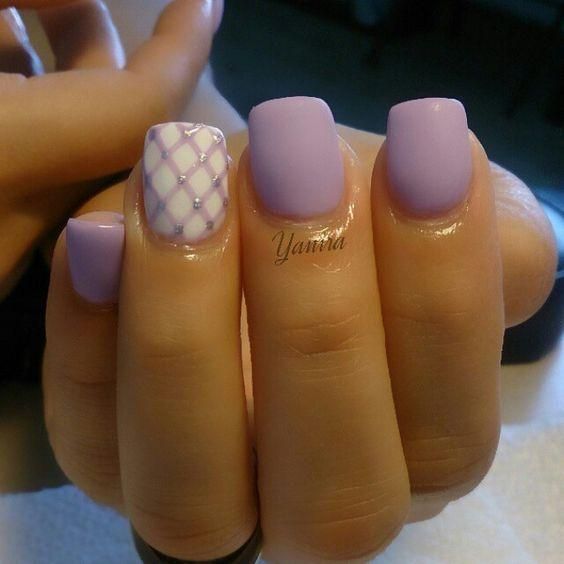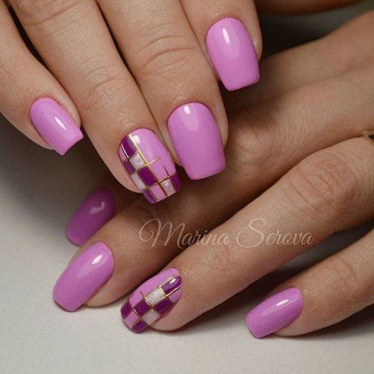 - Розово-сиреневый маникюр с рисунками в эскизной технике. Легкость дизайна с присущей оттенку нотой нежности.