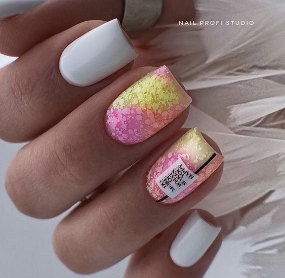- Френч, акцентированный оригинальной фактурой акцентных ногтей. Использование бульонок.