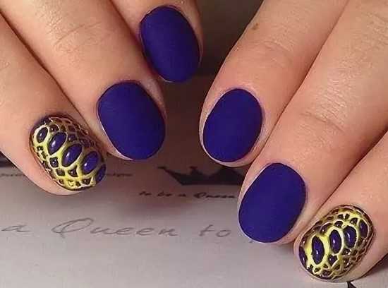 Техника достаточно проста, но конечный результат от этого не страдает никоим образом. Здесь ноготь покрывается матовым гель-лаком, посредством специального топа создаются красивые, переливающиеся узоры. Матовый маникюр выглядит элегантно и богато.