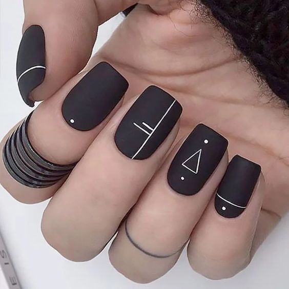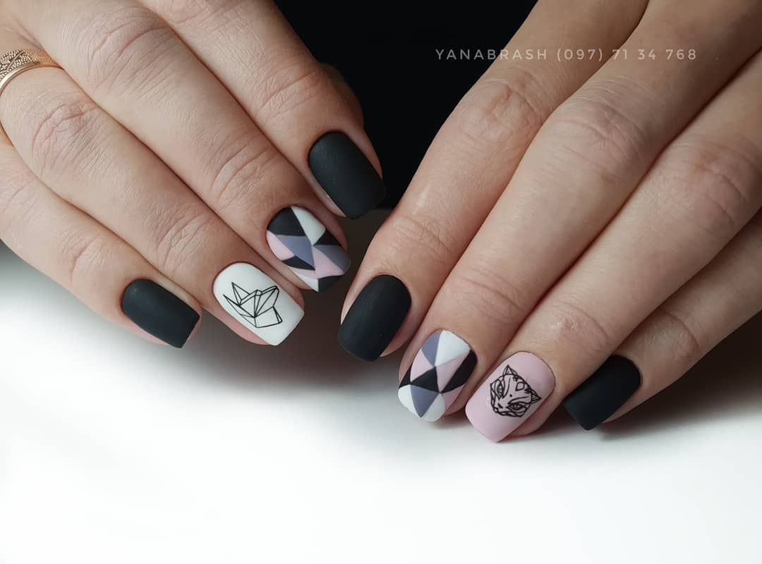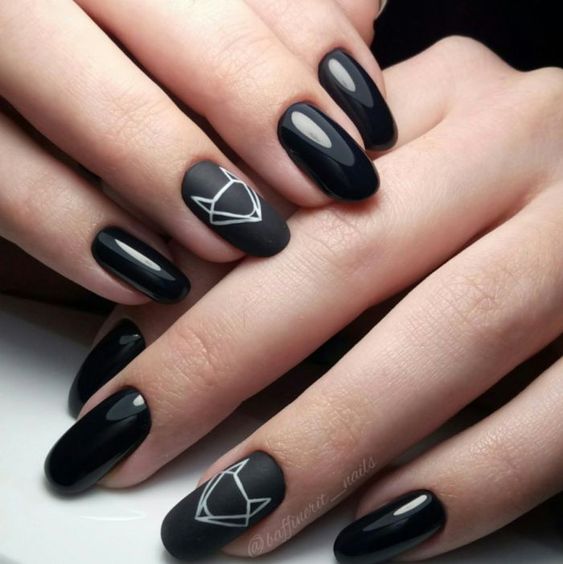 Стильный матовый маникюр уже долгое время находится на пике популярности, особенно, если идет речь о черном цвете. Он благородно украсить ноготки любой длины, формы, а дизайн с матовым покрытием можно делать любой: покрытие ноготка полностью, лунный маникюр и т.д.